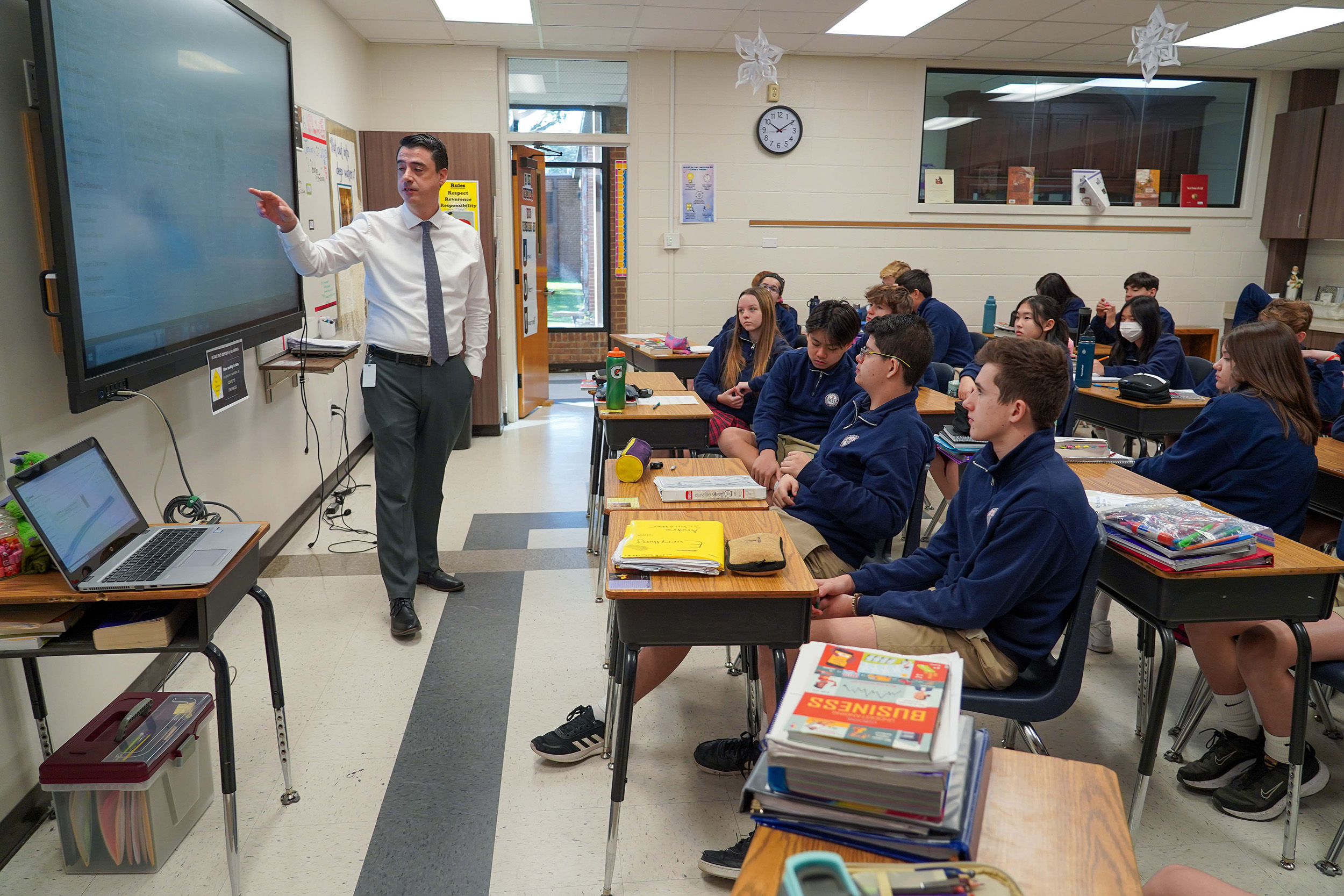 Pulido not only directs the program, but also teaches the classes, including some occasional lessons to the third, fourth, and fifth grade classes when applicable. Pulido said he tries to emphasize the moral principles of business, so the students can make decisions that reflect the values of their Catholic faith and one day incorporate those into their businesses.