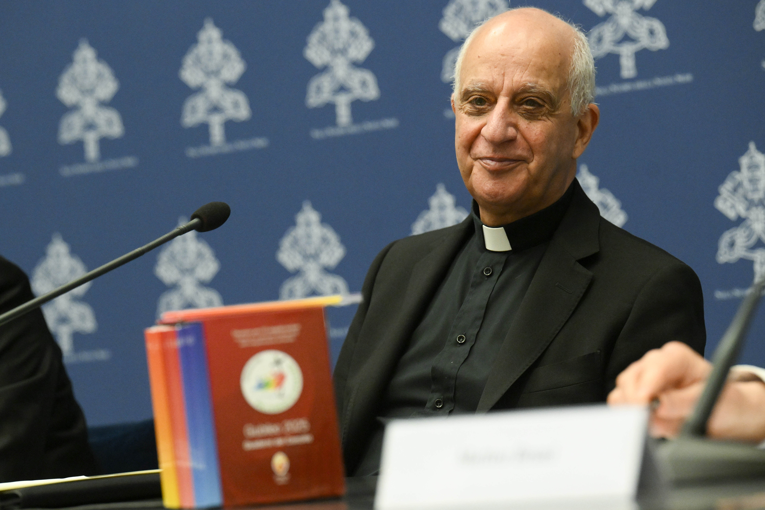 Archbishop Salvatore Fisichella speaks at a news conference at the Vatican on preparations for the Holy Year 2025 on May 9. Archbishop Fisichella and his team from the Dicastery for Evangelization held a dialogue on catechesis and evangelization in the U.S. with diocesan representatives on June 13 in Orlando. (Catholic News Service)