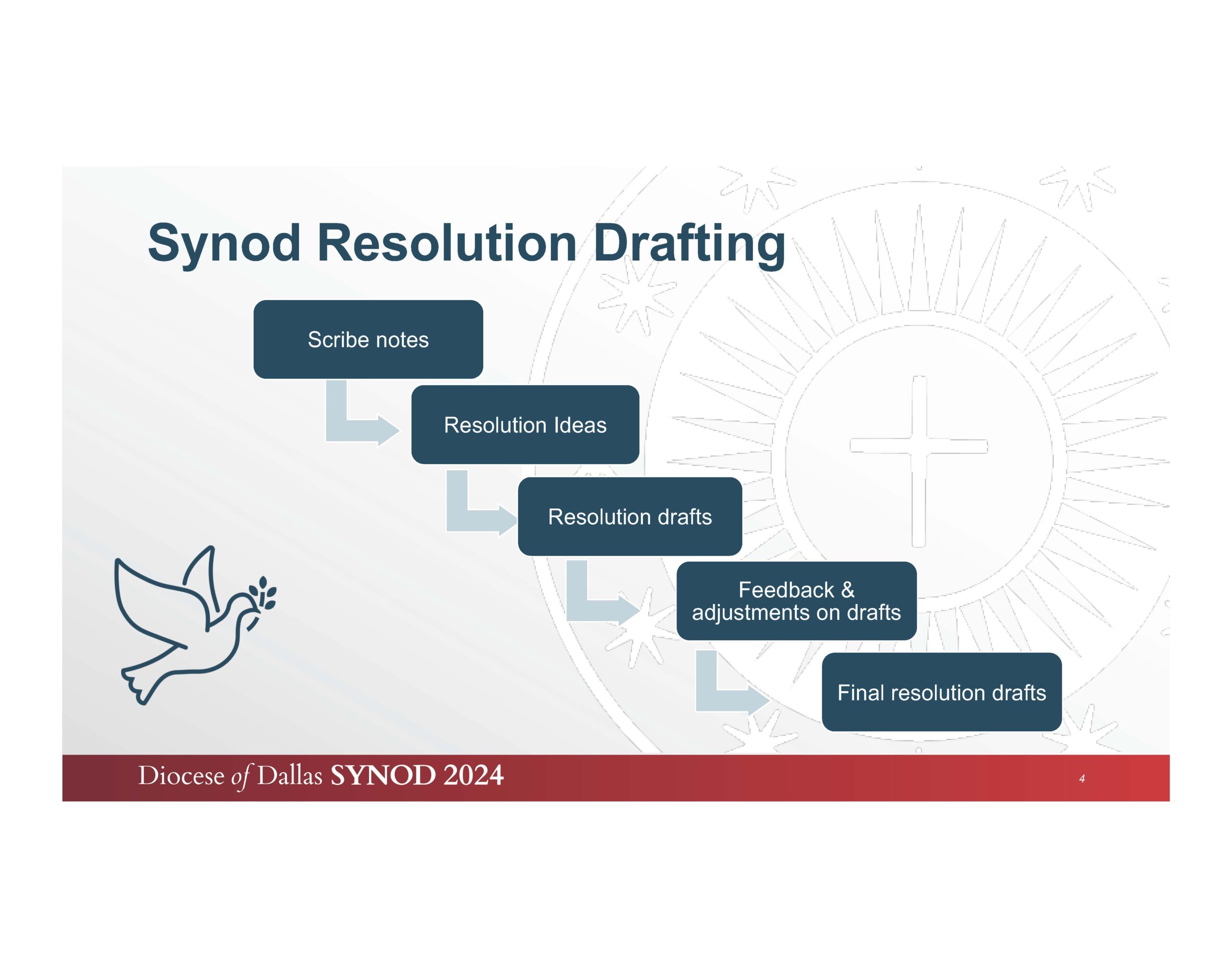Once these resolution drafts are written, there will be a lengthy process of revision including the chance for priests to offer feedback. Bishop Burns as final author will formally approve the resolutions presented to the voting members of the assembly for consideration in advance of the assembly.