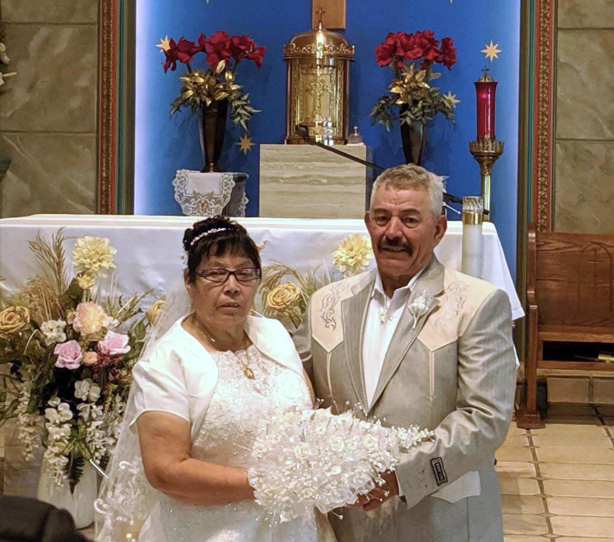 Sabino and Rosita Arreola of Tooele, Utah, who have been married for 55 years, are pictured after they renewed their vows when they celebrated their 50th wedding anniversary May 15, 2018. (OSV News photo/courtesy Arreola family)