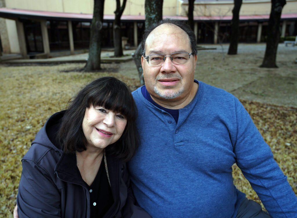 Linda and Ed Torres sit in the courtyard of Holy Spirit Catholic Church in Duncanville, the church where the couple’s Worldwide Marriage Encounter share group meets monthly. (AMY WHITE/The Texas Catholic)