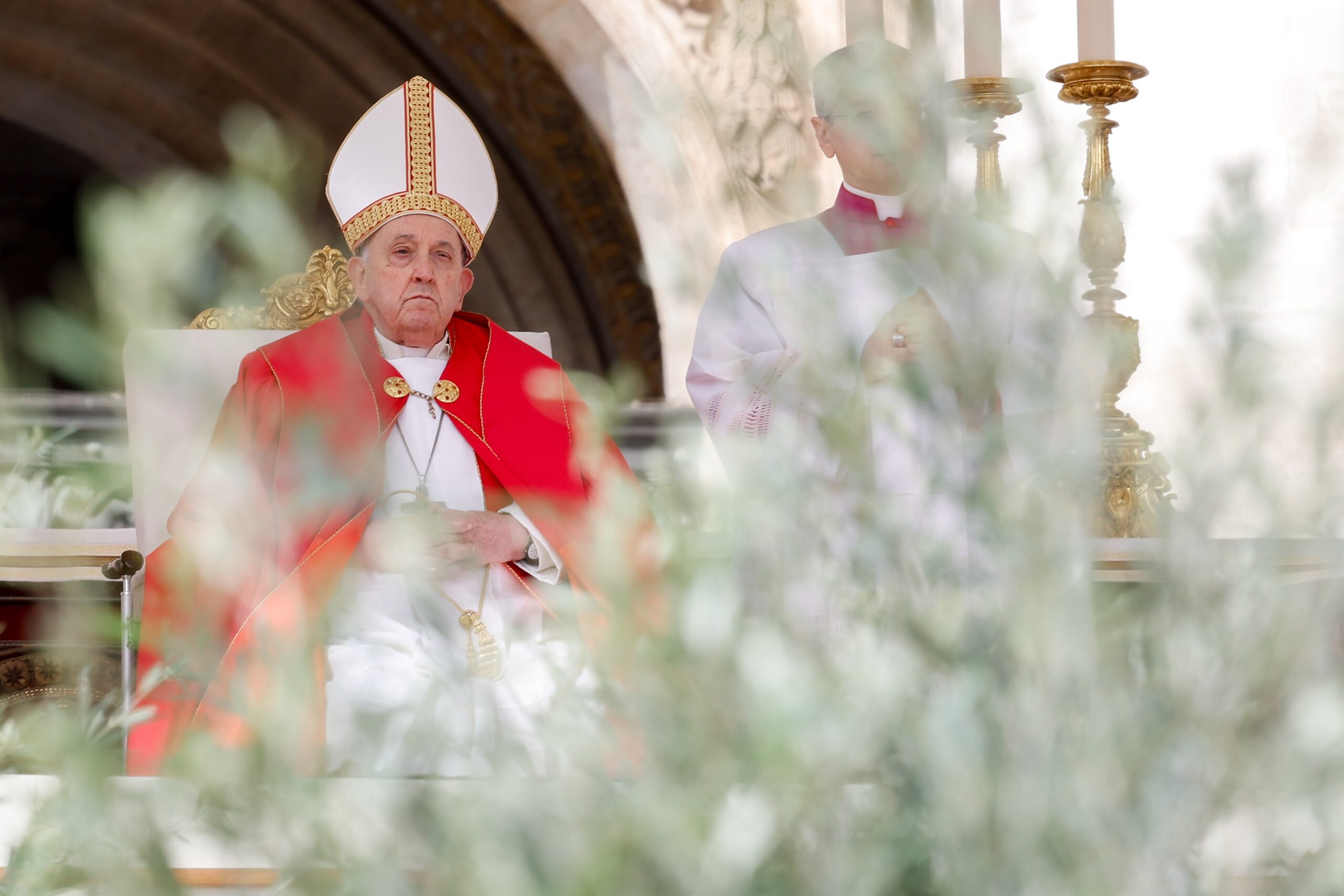 Dressed in red vestments, the color of the Passion, Pope Francis presided over the Mass, the solemn beginning of Holy Week, but he skipped the homily and did not have an aide read any prepared remarks. Cardinal Claudio Gugerotti, prefect of the Dicastery for Eastern Churches, was the main celebrant at the altar.